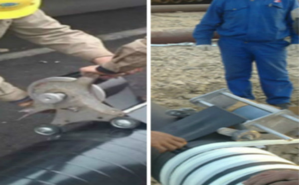 2)、确定为加强级总厚度≥1.2mm时,可选厚度为1.2mm以搭接胶带宽度的15~20%方式缠绕一遍。