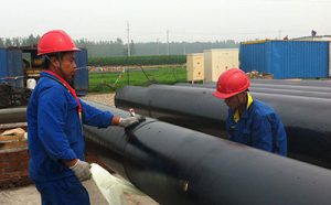 石油沥青玻璃布防腐层一直是油田埋地钢质管道外防腐的主要材料。大庆油田先后对500km沥青防腐管道进行了调查检测。调查发现85年以后建造的管线防腐层质量普遍不如六、七十年代建造的管线,原因与原材料和施工都有有关系。石油沥青(通常用10#建筑沥青)成份复杂,质量不稳定,软化点偏低、低温冷脆、高温流淌、耐老化性能较差;外保护层聚乙烯工业膜与沥青的粘接性差,机械强度低,易破损或被人为破坏,导致了整个防腐层耐水性和耐芦苇根茎穿透性能降低,使用寿命缩短。此外,沥青涂敷工艺复杂,施工温度高,环境污染严重,工人劳动强度大。涂敷质量不易控制。